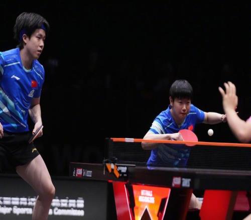 暂停回来,孙颖莎快劈得分,王楚钦进攻得分,追到了8比9。孙颖莎回球下网,韩国组合10比8拿到局点。林仲勋拧拉进攻得分,11比8赢下第二局。